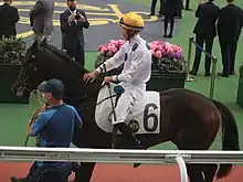 ![]() Golden Sixty in the Shatin Racecourse on 27 September 2020, guided by jockey Vincent C Y Ho. | |