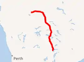 Goldfields Highway is a generally northwest–southeast highway in central Western Australia which links the Great Northern Highway at Meekatharra with Coolgardie-Esperance Highway south of Kalgoorlie.[1] The highway is approximately 797 kilometres (495 mi) in length, and is designated as Alternate National Route 94 from Kalgoorlie to Coolgardie–Esperance Highway.