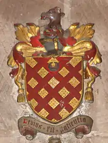However, it is clear that at some point in time a subordinate lord was enfeoffed at Goldstone and that it became a sub-manor of Child's Ercall. In 1280, specific reference was made to a separate Lord of Golston in an extent of the manor of Cheswardine, then held by Roger le Strange, who was at that time also lord of Child's Ercall.[10] Other members of Childs Ercall – Naggington and Dodicote – had also become separate manors.[11] The lordship of Goldstone continued to be held separately from that of Child's Ercall by the Goldstone family of Goldstone, who are first mentioned in the 12th century as 'de Goldestan'.[12] The Goldstones appear to have added another property to Goldstone itself, since they are found living at their manor of Dunval, near Bridgnorth in Shropshire, in the 16th century.[13] As a result, members of the family appear in the registers of Astley Abbotts and are mentioned as resident in Astley Abbotts parish from the 15th century. Some information on Richard's father Humphrey Goldston is found in the History of Parliament Trust publication:- The House of Commons 1509–1558. It confirms that Humphrey was one of the members of Parliament for Bridgnorth, and that in 1541 he was receiving income of lands at Astley Abbotts, north of Bridgnorth, formerly belonging to Shrewsbury Abbey. Dunval Hall is Elizabethan and was clearly built by the Goldstones since they were living there and owned it at the time that it was constructed. It seems most likely that it was John Goldstone of Goldstone and Dunval who built it; he married Dorothy Ottley, daughter of Adam Ottley of Pitchford Hall, on 22 October 1576 at Pitchford.[14] The family continued to reside at Dunval, and continued to own lands there and be connected to the place into the early part of the 17th century.[15][16] The Acton family who later owned it may have made alterations; they appear to have become related to the Goldstones by marriage.[17]