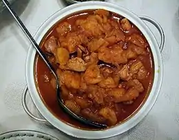 Gomgush (Armenian: գոմԳոշ) is a traditional Armenian banquet stew, resembling dzhash (Ճաշ) however with more added ingredients. A gomgush is often served at celebrations including weddings and banquets. Gomgush is a brothy stew including an array of meats and legumes, several vegetables, and spices. Gomgush is typically cooked in the tonir.