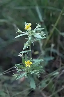 Goodenia neglecta is an ascending, weak-stemmed herb that typically grows to a height of up to 30 cm (12 in). It has egg-shaped leaves with the narrower end towards the base, leaves at the base of the plant, 15–60 mm (0.59–2.36 in) long and 3–20 mm (0.12–0.79 in) wide with teeth on the edges. Leaves on the stem are similar but decrease in size up the stem. The flowers are arranged in racemes up to 250 mm (9.8 in) long with leaf-like bracts, each flower on a pedicel 2–3 mm (0.079–0.118 in) long. The sepals are oblong to elliptic, about 3 mm (0.12 in) long, the corolla yellow, 10–15 mm (0.39–0.59 in) long. The lower lobes of the corolla are 4–5 mm (0.16–0.20 in) long with wings about 1 mm (0.039 in) wide. Flowering mainly occurs from February to April and the fruit is a more or less spherical capsule about 3 mm (0.12 in) in diameter.[2][3]
