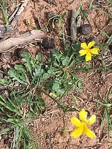 Goodenia pinnatifida, commonly known as cut-leaf goodenia,[2] scrambled eggs or mother ducks,[3] is a species of flowering plant in the family Goodeniaceae and endemic to Australia. It is a low-lying to ascending perennial herb with toothed to pinnatisect leaves, racemes of yellow flowers and more or less spherical fruit.