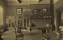 The restaurant was the corner room, lit from two sides by casement windows. It was used largely as a dining room for the residents and as a refreshment room for club meetings and entertainments. Opening out of the restaurant was the kitchen, conveniently arranged and with ample shelf and cupboard space.[4]