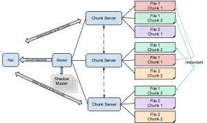 The Master server does not usually store the actual chunks, but rather all the metadata associated with the chunks, such as the tables mapping the 64-bit labels to chunk locations and the files they make up (mapping from files to chunks), the locations of the copies of the chunks, what processes are reading or writing to a particular chunk, or taking a "snapshot" of the chunk pursuant to replicate it (usually at the instigation of the Master server, when, due to node failures, the number of copies of a chunk has fallen beneath the set number). All this metadata is kept current by the Master server periodically receiving updates from each chunk server ("Heart-beat messages").
