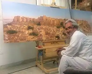 Gopal Swami Khetanchi (born 15 February 1958) is an Indian painter based in Jaipur.[1][2] Hailing from an artistic family in north Rajasthan, Khetanchi studied fine art in Jaipur and worked for some time as an assistant art director in Bollywood and an illustrator for magazines,[3][4][5][6] before returning to Rajasthan to focus on painting.[6][7][8]