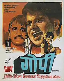 Gopi is a 1970 Hindi film produced by T. S. Muthuswami and S. S. Palaniappan, the film is directed by A. Bhimsingh. It stars Dilip Kumar, Saira Banu, Pran, Om Prakash, Nirupa Roy, Farida Jalal, Johnny Walker, Mukri, Durga Khote, Lalita Pawar in pivotal roles.