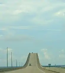The original bridge opened on July 2, 1955.[2] It was destroyed by Hurricane Frederic in 1979 and was replaced by a fixed precast concrete segmental bridge in 1982. The central main span was the first use of a 400-foot (122 m) span on a precast concrete segmental bridge.[1]