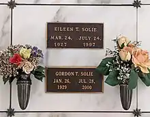 Solie's last announcing job was to be the Heroes of Wrestling pay-per-view in 1999, but he could not attend due to failing health. He was diagnosed with cancer soon after his retirement, and in the late-1990s, his vocal chords were removed due to throat cancer.[5] He died of the disease on July 27, 2000, at the age of 71.[5] His wife Eileen (known to friends as "Smokey") had died three years before, also from cancer.[3][5] In 2005, Florida Media, Inc. published a collection of Solie's short stories and poetry in Gordon Solie ... Something Left Behind.[4] Solie was survived by his five children Pam, Jonard, Denise, Greg, and Eric.[11]