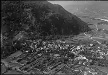The area around Gorduno was prehistorically settled, though very little is known about the earlier settlements. The modern municipality of Gorduno is first mentioned in 1182 as medius locus de Gorduno.[2] It was first mentioned in the dispute between the churches of Como and Milan, which was settled by the verdict of 1202. In the verdict Como received the little church of SS Maurizio e Carpoforo in the so-called Castle of Gnosca, which, contrary to the name, was in the territory of Gorduno. The church was strategically located on the Ticino river. In the Late Middle Ages, Gorduno was a municipality in the County of Bellinzona. In 1374, the municipality was combined with Gnosca and placed under the control of Podestà, a canon of Milan. This placed the church under the Ambrosian Rite of the Diocese of Milan. The village had completely split from the Roman Rite Church in Bellinzona by 1538-83. The parish functions moved from the Castle Church to the village church of SS Sebastiano e Rocco.[2]