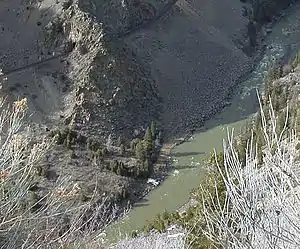 Gore Canyon, elevation 6,985 feet (2,129 m),[1] is a short isolated canyon on the upper Colorado River in southwestern Grand County, Colorado in the United States. Steep and rugged, the approximately 3 mile (5 km) long gorge was carved by the river as it passed the northern end of the Gore Range southwest of Kremmling. The Colorado descends from approximately 7,300 ft (2,200 m) to approximately 7,000 ft (2,100 m) over the length of the canyon. The steep walls ascend approximately 1,000 ft (300 m) on either side. The canyon effectively marks the southwestern end of the Middle Park basin in north central Colorado.