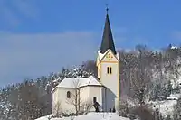 The local church is dedicated to Saint Urban and belongs to the Parish of Slivnica pri Celju. It dates to the early 17th century and was consecrated in 1621. In the 19th century it was partially rebuilt and vaulted.[6]