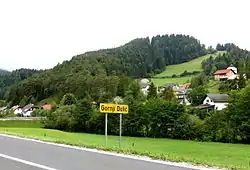 Gornji Dolič is a sprawling settlement in hilly terrain in the western part of the Dolič Lowland (Slovene: Doliško podolje) between the Pohorje Mountains to the north and the Paka Mount Kozjak (Slovene: Paški Kozjak) to the south.[2] It lies along the main road from Slovenj Gradec to Vitanje and includes the hamlets and isolated farms of Cvetržnik, Globočnik, Golčman, Grmič, Hof, Interbožnik, Pantner, Potočnik, Pušnik, and Vodovšek. Surrounding elevations include Pečovnik Peak (Slovene: Pečovnikov vrh; 794 meters or 2,605 feet) and Pantner Peak (Slovene: Pantnerjev vrh; 853 meters or 2,799 feet) to the south, and Tičler Peak (Slovene: Tičlerjev vrh; 686 meters or 2,251 feet) to the northeast. The Paka River flows through the settlement. There are meadows in the low-lying areas. There is shallow sandy soil on the hillsides, which is vulnerable to droughts. The hills are covered in mixed pine and beech woods, with interspersed isolated farms.[2]