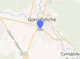Gorodishche (Russian: Городи́ще) is a town and the administrative center of Gorodishchensky District in Penza Oblast, Russia, located on the Yulovka River (Sura's tributary) 48 kilometers (30 mi) east of Penza, the administrative center of the oblast. The 2010 census found it had a population of 8096.