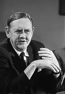 The Government performed poorly in the 1970 half senate election adding to pressures on Gorton's leadership. Defence minister Malcolm Fraser developed an uneasy relationship with Gorton and in early 1971, Fraser accused Gorton of being disloyal to him in a conflict with Army officials over progress in South Vietnam.[21] Fraser was engaged in a struggle over authority with service chiefs, when in 1971, journalist Alan Ramsay published an article quoting Defence Chief Sir Thomas Daly as having described Fraser as extremely disloyal to the army and to its junior minister, Andrew Peacock. Ramsay had conferred with Gorton prior to publishing the article, but Gorton had not repudiated its contents. Fraser seized upon the report, resigned and accused Gorton of intolerable disloyalty.[22] On 9 March Fraser told Parliament that Gorton was "not fit to hold the great office of Prime Minister".[23] Fraser accused Gorton of obstinacy and a dangerous reluctance to take advice from Cabinet or the Public Service.[24]