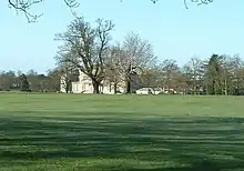 Filming was conducted at Wrotham Park for the exteriors, staircase, dining room and drawing room,[15] and Syon House for the upstairs bedrooms.[16] The opening sequence outside Lady Trentham's home was shot at Hall Barn, near Beaconsfield, Buckinghamshire, whose grounds were also used as the scene for lunch after the shoot. Sound stages were built to film the scenes of the manor's downstairs area.[17] Shepperton Studios was used for off-location filming.[18]