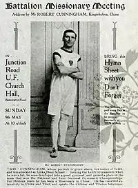 Two years later (1907), Robert Cunningham (Chinese name: 顧福安; 1883–1942), a Scottish ex-gymnast turned missionary, was sent to Kangding by CIM as Edgar's assistant, who was going to serve as the pastor of the church until his death in 1942. 'Even the Archbishop of Canterbury can not dwell in contemplation and prayer day and night', Cunningham introduced some Western games to the Tibetans, tiddlywinks, ludo, halma and snap, the remit is to 'evangelise in an entertaining way'. He also published numerous articles on the study of Khams Tibet in West China Missionary News and Journal of the West China Border Research Society.[4]