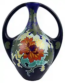 A vase in the "Chryso" pattern, circa 1925, manufactured by Kunstaardewerkfabriek Regina of Gouda, Holland.