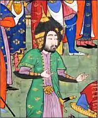 Goudarz (Persian: گودرز) is one of the main Iranian heroes in Shahnameh, the national epic of Greater Iran, and progenitor of one of its most prominent families.[1] He is son of Kashvad, father of Giv and Roham and the grandfather of Bizhan. His first appearance is in the time of Kay Kavus and thereafter he appears almost in every story of the heroic age, sometimes he is the spahbed of Iranian Army. His personality is described very positively with traits such as loyalty, patience and altruism.[2]