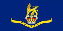The governor-general uses a personal flag, which features a lion passant atop a St. Edward's royal crown with "Grenada" written on a scroll underneath, all on a blue background. It is flown on buildings and other locations in Grenada to mark the governor-general's presence.
