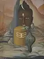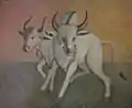‘Dadhi Manthan’ (Churning) - In the art world this work was distinctively noticed then for its theme. It depicted artistically the rhythmic movement of churning and included minute details such as the flowing movement of a background curtain etc. The color combination showed traces of Neo Rajput style.[51][52][53]