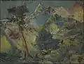 Fascinated by the beauty of nature, he tried to explore it through his landscapes throughout his life. His landscapes showed a new view to reveal the beauty of nature. Most of his landscapes show the panoramic view revealing the vast space. His landscapes show simplified forms and sure, bold brush-strokes together with pleasant color-schemes derived from natural pigments. He chiefly experimented in aspects of light, space and color. Though his training emphasized on academic realism, his technique of landscape painting showed the influence of the Impressionism and Post-impressionism.[2] Color