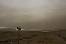Harmonic tremors were recorded twice around Grímsvötn on 2 and 3 October 2010, possibly indicating an impending eruption.[7] At the same time, sudden inflation was measured by GPS in the volcano, indicating magma movement under the caldera. On 1 November 2010 meltwater from the Vatnajökull glacier was flowing into the lake, suggesting that an eruption of the underlying volcano could be imminent.