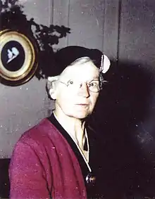 Born to a cultured family in Baltimore,[1] Turnbull studied painting at the Maryland Institute College of Art, the Pennsylvania Academy of the Fine Arts, and the Art Students League of New York. She then turned her attention to sculpture, studying at the Rinehart School of the Maryland Institute and in Rome.[2] In 1914 she received the Whitelaw Reid Prize in Paris,[3] and she received the Anna Hyatt Huntington Prize in 1932 and 1944.[2] Turnbull was notorious during her life for her commitment to abstinence in many fields – she objected strenuously to alcohol, and served only apple juice at her own gatherings – and her support for civil rights. She lived in Baltimore for much of her life, in a house and studio designed by her brother Bayard, and never married.[1] Besides her artistic pursuits she wrote a number of books, including Tongues of Fire (1929)[4] and Fruit of the Vine (1950).[5] Her autobiography Chips from My Chisel was published in 1953,[6] and she also editor Essence of Plotinus (1934).[7] Turnbull also wrote pamphlets and contributed articles to a variety of publications.[2] One example is the eight page pamphlet, Battle Front as Seen by a Sculptor, published by the Women's International League in 1936.[8]