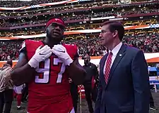 Grady Jarrett (born April 28, 1993) is an American football defensive end for the Atlanta Falcons of the National Football League (NFL). He played college football at Clemson.