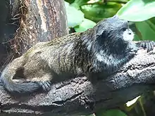 Graells's tamarin, Saguinus nigricollis graellsi, is a subspecies of the black-mantled tamarin from the northwestern Amazon in southeastern Colombia, eastern Ecuador and northeastern Peru.[3][4] It differs from other black-mantled tamarins in having a dull olive-brown (no reddish-orange) lower back, rump and thighs.[5][6] However, molecular genetic analysis does not support treating Graell's tamarin as a separate species from the black-mantled tamarin.[3]