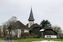 The first church in the village was built in the 7th or 8th century. The aisleless church was built above a post-Roman tomb outside the village on the road to Fraubrunnen. The village bought the patronage rights to the church from the Abbey in 1258. In 1535 it became the parish church for the municipality. The current church was built in 1748.