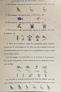 Reproduction of hieroglyphs from the Grammaire