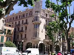 The Gran Hotel is a former historic hotel in Palma de Mallorca, in Spain. It is part of the historic centre of the city.[1] The hotel was designed by Lluís Domènech i Montaner and completed in 1903. Today the building has been converted into a cultural center, home to the Fundación la Caixa. It contains a permanent exhibition of paintings by Anglada Camarasa. The building is one of the most important examples of Modernisme on the island, with a facade lavishly decorated with sculptures and ceramics.