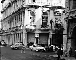 The building on a plot bounded by Calles Neptuno, San Rafael, Monserrate y Zulueta was designed by the architect Don Pedro Tomé y Veracruisse, construction began in 1890. While the building was still unfinished, Don Julián de Zuluetawas sold it to Andrés Gómez Mena who came to Cuba from Spain and completed the first floor. Designed around interior passageways that ensured natural light and ventilation, four floors were added from 1916 to 1918. The ground floor was surrounded on all four sides by covered galleries, the inner passageways of two interior diagonal streets, forming an 'X' on the plan, were integrated with the exterior galleries. The upper floors contained law firms and business offices. Gomez built two theaters, the Politeama Grande and the Politeama Pequeño, which had a short-existence.[3] Andrés Gómez Mena was shot to death in Havana, on January 11, 1917, by the Catalan watchmaker Fernando Reugart, who argued that Gómez Mena had disrespected his wife.[4] Since its early days in 1832, the most popular commercial stores were directly located on the streets of Calles Muralla and Oficios, along with other arteries, such as Monte, Neptuno, San Rafael, and Galiano. The building until 1918 occupied one floor with covered galleries, four levels were eventually added, eight elevators to facilitate access to those floors. It had 560 offices, the Pitman commercial academies were located on the second level, and for students seeking to prepare in shorthand and typing methods. There was the Ibero-American Institution of Culture chaired by the Cuban scholar Fernando Ortiz, as well as consular and diplomatic agencies. it was estimated that 25,000 people visited daily. The Manzana de Gomez at one point held over 500 offices it was estimated that 25,000 people visited daily.[5]