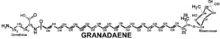 - Paradas M, Jurado R, Haidour A, Rodríguez Granger J, Sampedro Martínez A, de la Rosa Fraile M, Robles R, Justicia J, Cuerva JM (2012). "Clarifying the structure of granadaene: total synthesis of related analogue [2]-granadaene and confirmation of its absolute stereochemistry". Bioorganic & Medicinal Chemistry. 20 (22): 6655–6651. doi:10.1016/j.bmc.2012.09.017. PMID 23043725.