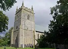 Parts of the All Saints' parish church date back to the 12th century. It is a Grade I listed building, "one of the S Notts churches which were reduced in size in post-Reformation times."[8] According to the English Heritage description, it stands on a pre-Conquest site and underwent restoration about 1777 and in 1888.[9] A Roman altar stone was dug up in the churchyard in 1812.[10]