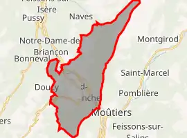Grand-Aigueblanche is a commune in the Savoie department in the Auvergne-Rhône-Alpes region in south-eastern France. It was established on 1 January 2019 by merger of the former communes of Aigueblanche (the seat), Le Bois and Saint-Oyen.[2]