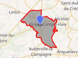 Grand-Camp is a farming village situated in the Pays de Caux, some 21 miles (34 km) east of Le Havre, at the junction of the D26 and D28 roads.