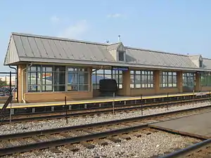 Grand/Cicero is a commuter railroad station in the Austin neighborhood on the West Side of Chicago and is 6.5 miles (10.5 km) away from Union Station, the eastern terminus of the line.[2] As of 2018, Grand/Cicero is the 199th busiest of Metra's 236 non-downtown stations, with an average of 80 weekday boardings.[1] The station is located at the corner of West Grand Avenue and North Cicero Avenue. Service to the station began on December 11, 2006. The station is served by the Milwaukee District West Line. Metra’s North Central Service trains use these tracks but do not stop. Grand/Cicero station is closed on weekends, holidays, and after 9pm.