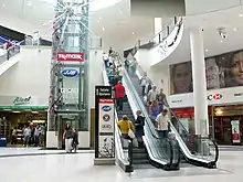 The Grand Arcade is a shopping centre in the town centre of Wigan, England. Built in 2007, it consists of 39 retailers with a total annual footfall of 6.3 million people.[1] It currently extends to 439,000 sq ft (40,800 m2), with units varying in size. The centre is owned and operated by RDI REIT, a property investment business. When built it was the UK's first carbon neutral shopping centre, and so produces net zero carbon dioxide emissions.[2][3] The Grand Arcade houses a bronze statue of George Formby designed by Manx artist Amanda Barton, which was unveiled in 2007.[4]