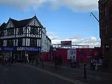 The shopping centre is bounded by Standishgate, Crompton Street, Millgate and Riverway. Some shops have two entrances - one to the internal mall and one onto the high street. It has two multi-storey carparks on Milgate and Crompton Street with over 850 spaces combined.[14] Bus access is available at the nearby Wigan bus station. Two railway stations serve Wigan town centre, Wigan Wallgate and Wigan North Western.[15]