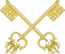 The political importance of the Grand Chamberlain stemmed from his having permanent access to the King's Chamber. His symbol of office was the keys to the royal apartments, which he always carried; in token of which, he was permitted to place two gold keys in saltire behind his coat of arms. He also was entitled to carry the banner of France. In rank, the position was between the Grand Maître de France and the Grand Écuyer. During a lit de justice, he sat at the king's feet.