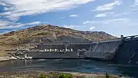 Grand Coulee is the longest and deepest of eastern Washington canyons. Its unique characteristics include a lower floor at the head of the channel than at its outlet and the widest and highest dry falls cliff in the middle.[6] It was created through the process of cataract recession, which included a cataract twice as high as its existing Dry Falls.[7]