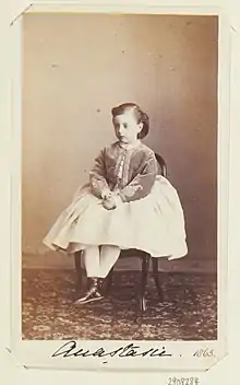Grand Duchess Anastasia Mikhailovna of Russia (Russian: Анастасия Михайловна; 28 July 1860 – 11 March 1922) was the only daughter and second child of Grand Duke Michael Nicolaievich of Russia and a granddaughter of Tsar Nicholas I of Russia.