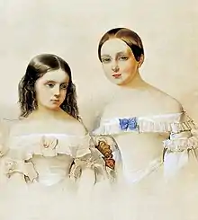 Her mother took a great interest in her daughters and was very involved in their childhoods, raising them relatively strictly and personally selecting their teachers in subjects such as foreign languages, singing, and drawing.[3] Unfortunately, Anna and Alexandra died in childhood while Elizabeth and Maria died only a year apart in 1845 and 1846 respectively. This meant that for much of her life, her mother had only Catherine on whom to focus her attention.[4]