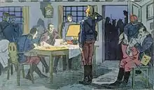 The chief of staff was assisted by an état-major-général, who ran the GQG general staff of around 50 officers and saw that the commander-in-chief's orders were carried out and two aides-majors with responsibilities for the individual departments of GQG.[4][5] GQG was originally organised into four bureaux (or departments). The First Bureau was responsible for organization, personnel and equipment; the Second Bureau for intelligence, information and political affairs; the Third Bureau for the planning of military operations and the Fourth Bureau (sometimes called the Direction de l'Arrière - Directorate of the Rear [lines]) for transport, communication and supply.[4][6]