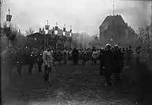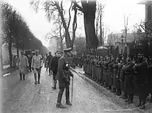 ![]() Minister for War Alexandre Millerand arriving at the Chantilly Grand Quartier Général building in February 1915 | |
