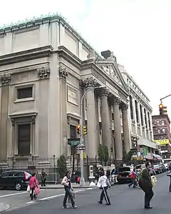 The Bowery Savings Bank building at 130 Bowery, extending to Grand and Elizabeth Streets, was designed by Stanford White of the architecture firm of McKim, Mead & White, and built in 1893–95. It is a New York City designated landmark[8] and on the National Register of Historic Places.[9]