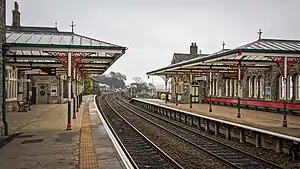 Grange-over-Sands is a railway station on the Furness Line, which runs between Barrow-in-Furness and Lancaster. The station, situated 15+1⁄2 miles (25 km) north-west of Lancaster, serves the town of Grange-over-Sands in Cumbria. It is owned by Network Rail and managed by Northern Trains.
