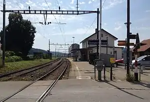 Granges-Marnand railway station (French: Gare de Granges-Marnand) is a railway station in the municipality of Valbroye, in the Swiss canton of Vaud. It is an intermediate stop on the standard gauge Palézieux–Lyss line of Swiss Federal Railways.[1]