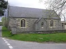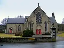 Inverallan Parish Church (Church of Scotland) is located on Mossie Road.[43] The current Inverallan church was rebuilt on the site of several earlier churches to a design by the architect Alexander Smith Cullen in 1886.[44][45][7] The rebuilding was funded by Caroline Stuart, Countess of Seafield as a memorial to the death of her husband and son.[44] The church is in Victorian Gothic in style and set out in a cruciform shape.[44] The church incorporates details from the previous churches on the site, including carvings and woodwork from the 17th century.[44]
